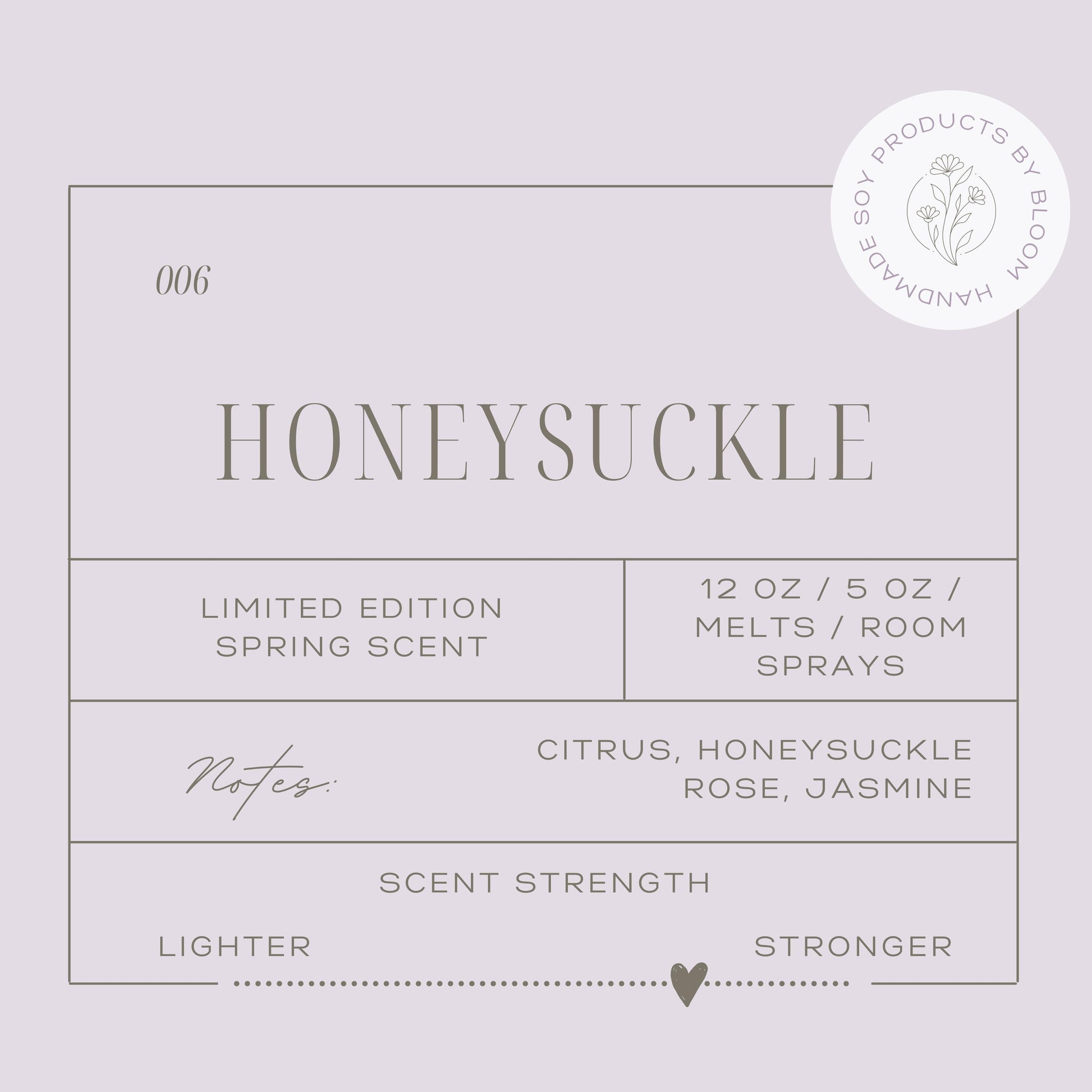 Notes: Citrus + Honeysuckle + Rose + Jasmine
